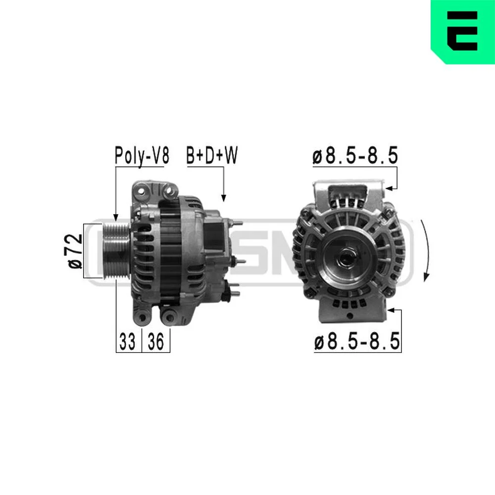 | Vzdálenost mezi řemenicí a generátorem [mm] | 33 mm |