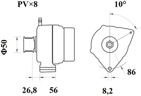 | Vzdálenost mezi řemenicí a generátorem [mm] |