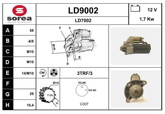 | Výkon startéru (v kW) | 1,7 kW |