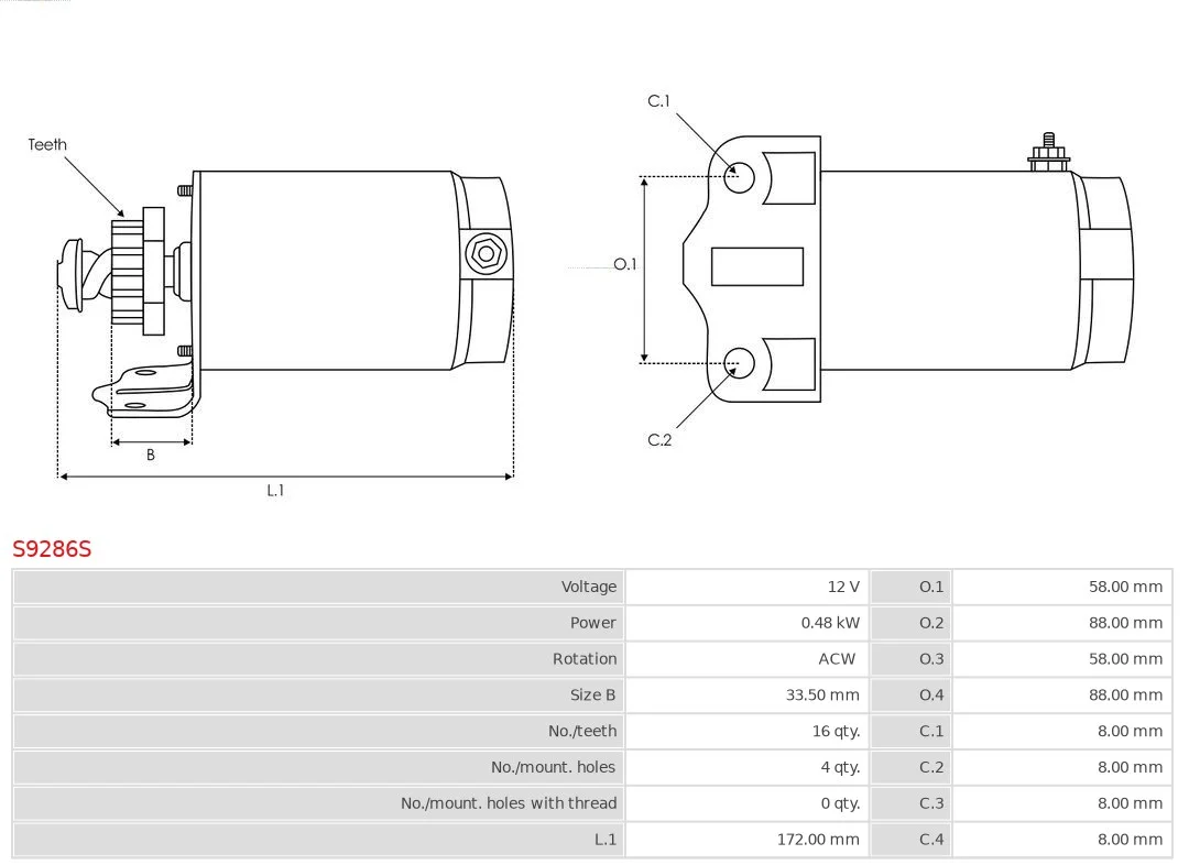 Výkon startéru (v kW) | 0,48 kW |