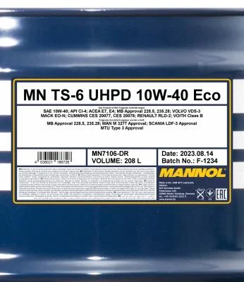 Motorový olej Mannol TS-6 UHPD 10W-40 Eco