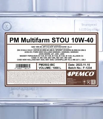 | Doporučení výrobce oleje | CASE I.H. MS 1204 |