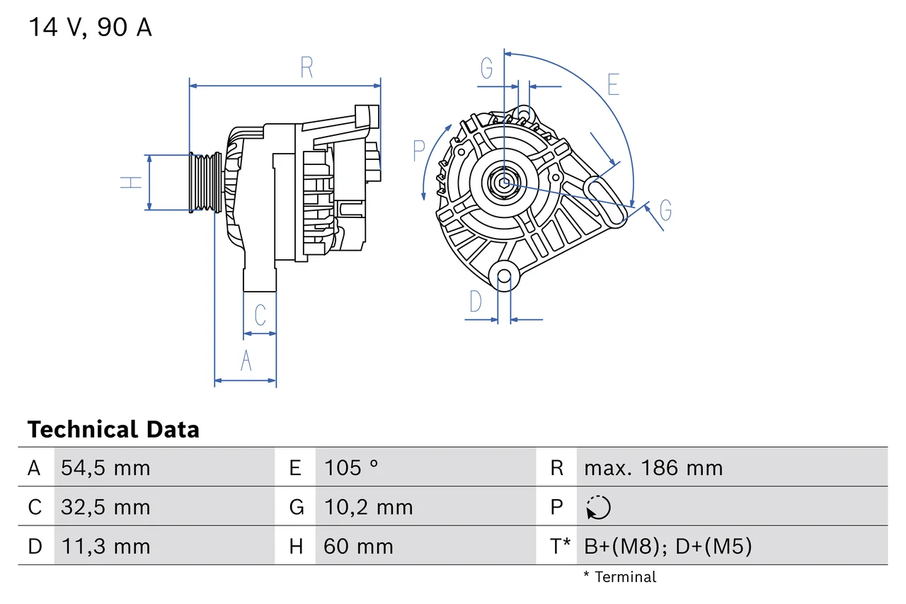 | Vzdálenost mezi řemenicí a generátorem [mm] |