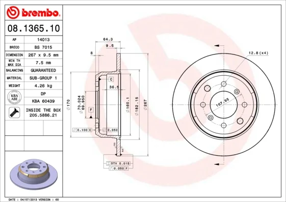 BREMBO 08.1365.10 (AutoAnděl: BR08.1365.10)
