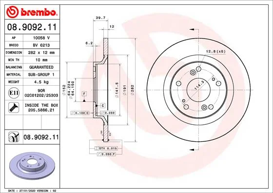 HONDA S2000 (AP) 2.0 (AP1) - Brzdový kotouč od 6/1999, 1997 ccm, 177 kW, 240 hp, F20C VTEC, Kabriolet