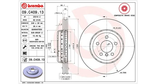 BMW 5 Touring (F11) 530 d - Brzdový kotouč od 9/2011 do 2/2017, 2993 ccm, 190 kW, 258 hp, N57 D30 A, kombi