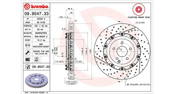 typ brzdového kotouče | Vnitřně větráno – vnitř. větrání lopatkami kapkovitého tvaru |