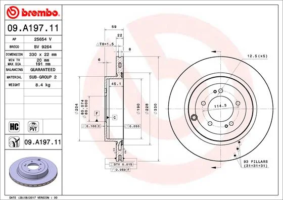 MITSUBISHI LANCER VIII (CY_A, CZ_A) EVO X (CZ4A) - Brzdový kotouč od 6/2008 do 12/2015, 1998 ccm, 217 kW, 295 hp, 4B11-T/C, limuzína