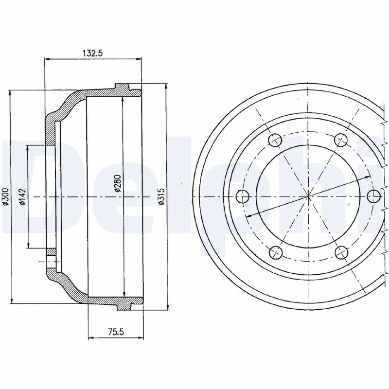 | Vnější průměr brzdového bubnu [mm] | 315 mm |