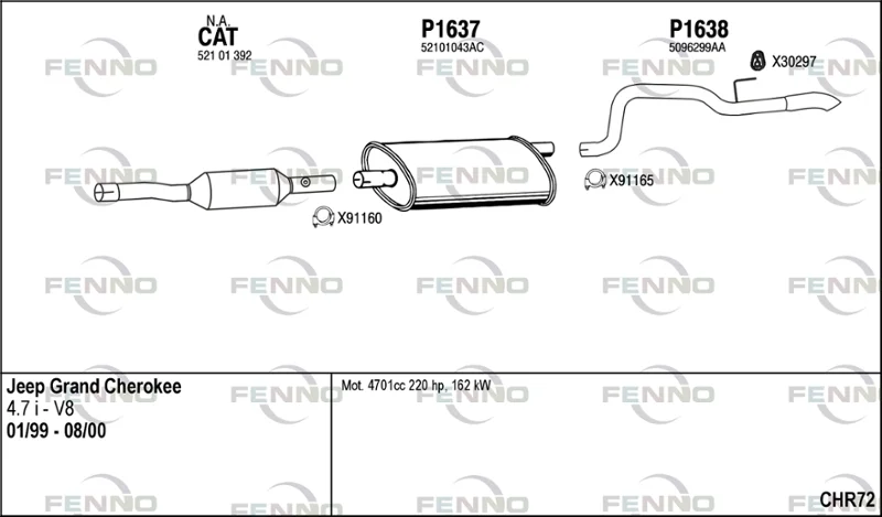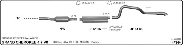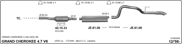 JEEP GRAND CHEROKEE II (WJ, WG) 4.7 V8 4x4 - Výfukový systém - kompletní od 4/1999 do 8/2000, 4701 ccm, 162 kW, 220 hp, EVA, uzavřený terénní vůz