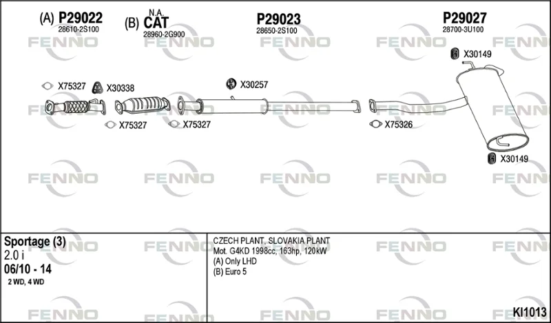 KIA SPORTAGE III (SL) 2.0 CVVT AWD - Výfukový systém - kompletní