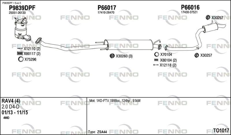 TOYOTA RAV 4 IV (_A4_) 2.0 D 4WD (ALA41_) - Výfukový systém - kompletní od 1/2013 do 11/2018, 1998 ccm, 91 kW, 124 hp, 1AD-FTV, SUV