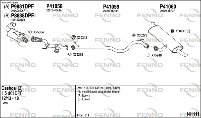 NISSAN QASHQAI II SUV (J11, J11_) 1.5 dCi - Výfukový systém - kompletní od 11/2013, 1461 ccm, 81 kW, 110 hp, K9K 636, K9K 646, SUV