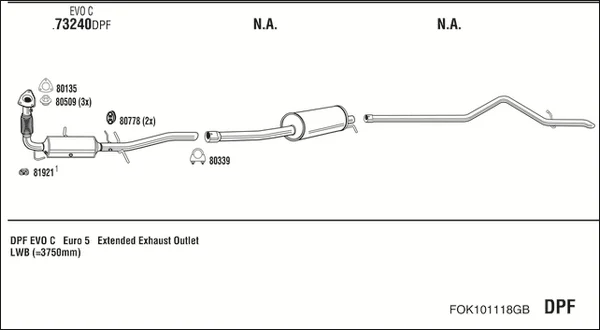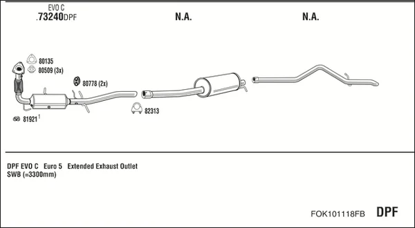 FORD TRANSIT V363 valník/podvozek (FED, FFD) 2.2 TDCi - Výfukový systém - kompletní od 8/2013 do 12/2018, 2198 ccm, 114 kW, 155 hp, CVF5, valník/podvozek