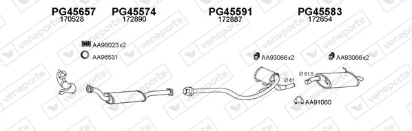 PEUGEOT 605 (6B) 2.1 TD 12V - Výfukový systém - kompletní od 8/1994 do 9/1999, 2088 ccm, 80 kW, 109 hp, P8C (XUD11BTE), PHZ (XUD11ATE), limuzína