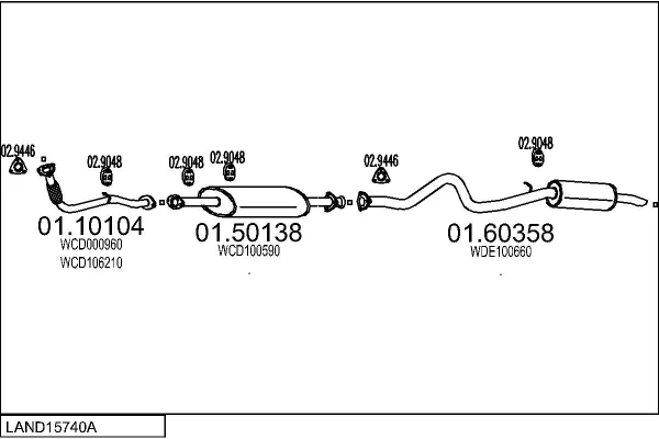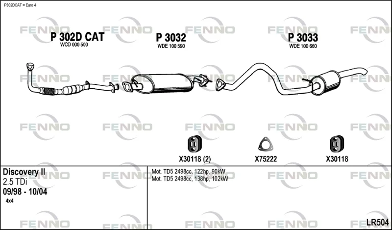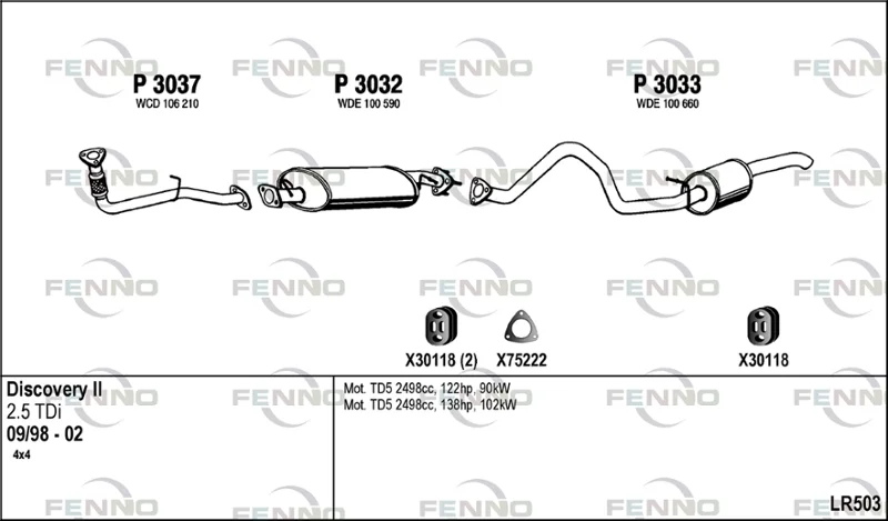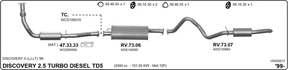 LAND ROVER DISCOVERY II (L318) 2.5 Td5 4x4 - Výfukový systém - kompletní od 11/1998 do 6/2004, 2495 ccm, 102 kW, 139 hp, 10 P, 15 P, 16 P, uzavřený terénní vůz