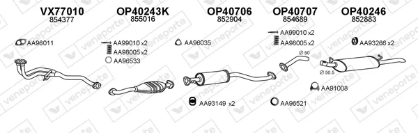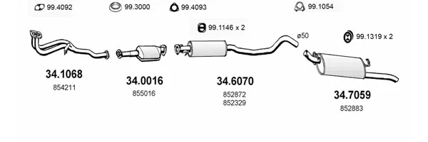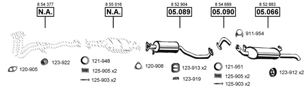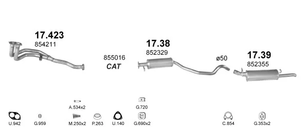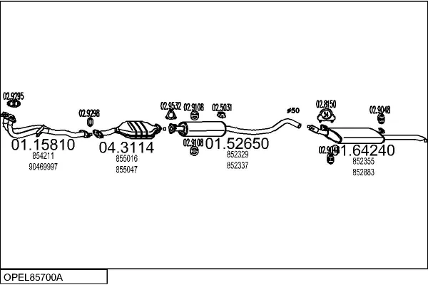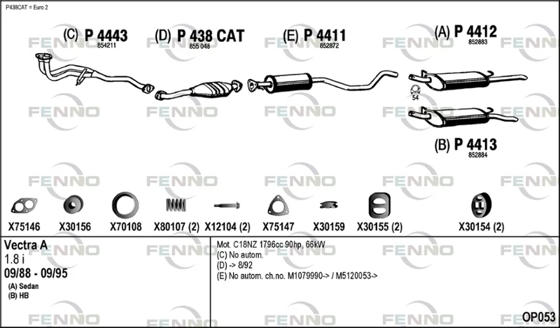 OPEL VECTRA A (J89) 1.8 i Cat (F19, M19) - Výfukový systém - kompletní od 3/1990 do 11/1995, 1796 ccm, 66 kW, 90 hp, C 18 NZ, limuzína