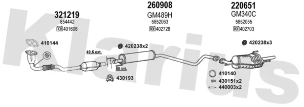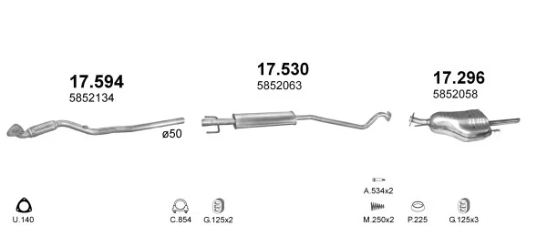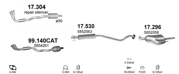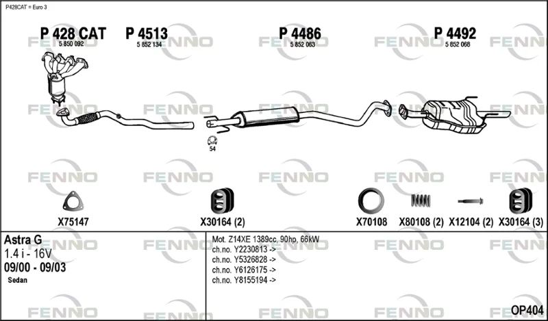 OPEL ASTRA G limuzína (T98) 1.4 16V (F69) - Výfukový systém - kompletní od 9/1998 do 1/2005, 1389 ccm, 66 kW, 90 hp, X 14 XE, Z 14 XE, limuzína