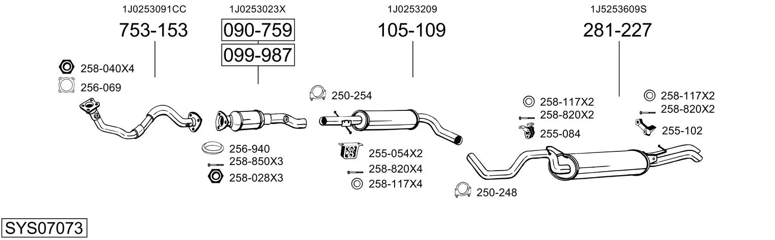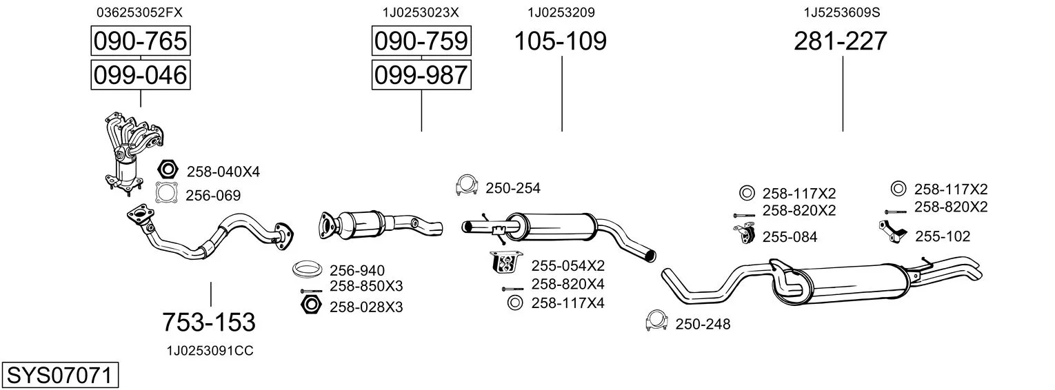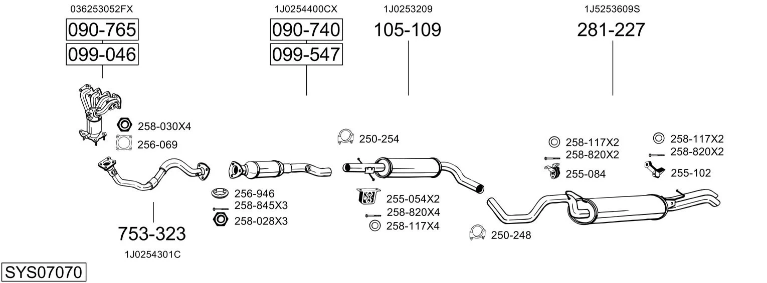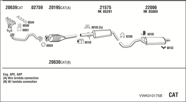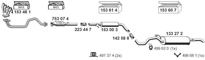 VW BORA I (1J2) 1.4 16V - Výfukový systém - kompletní od 3/2000 do 5/2005, 1390 ccm, 55 kW, 75 hp, AHW, AKQ, APE, AXP, BCA, limuzína