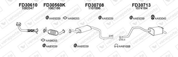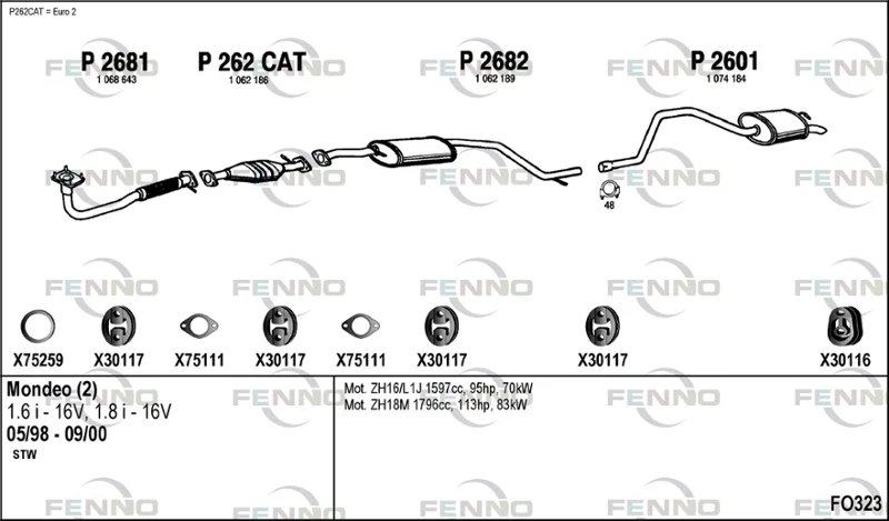 FORD MONDEO II Turnier (BNP) 1.6 i 16V - Výfukový systém - kompletní od 5/1998 do 9/2000, 1597 ccm, 70 kW, 95 hp, L1L, L1N, L1Q, kombi