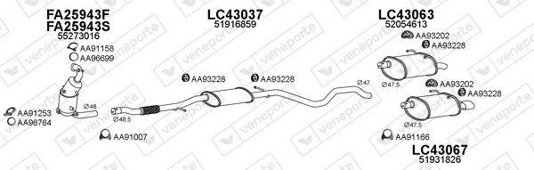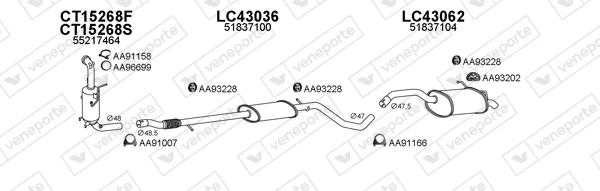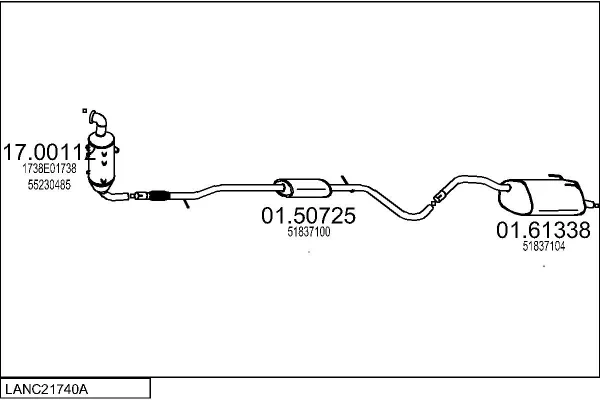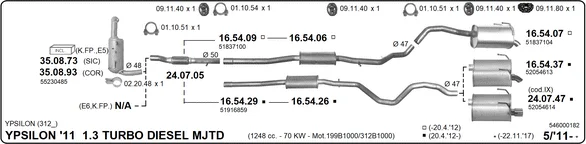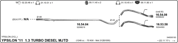 LANCIA YPSILON (312_) 1.3 D Multijet (312.YXE1A, 312.YXU1A) - Výfukový systém - kompletní od 5/2011 do 8/2018, 1248 ccm, 70 kW, 95 hp, 199 B1.000, 312 B1.000, Šikmá zadní část