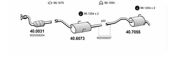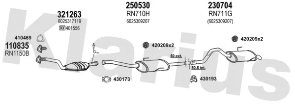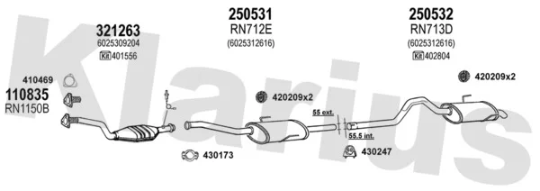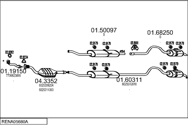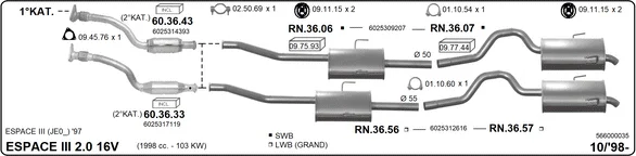 RENAULT ESPACE III (JE0_) 2.0 16V (JE0N, JE0L, JE02) - Výfukový systém - kompletní od 10/1998 do 10/2002, 1998 ccm, 103 kW, 140 hp, F4R 700, F4R 701, velkoprostorová limuzína
