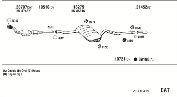 VOLVO V70 I (875, 876) 2.4 Bifuel - Výfukový systém - kompletní od 5/1998 do 12/1999, 2435 ccm, 106 kW, 144 hp, GB 5252 S, kombi