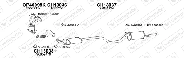CHEVROLET AVEO limuzína (T300) 1.6 - Výfukový systém - kompletní od 3/2011, 1598 ccm, 85 kW, 116 hp, F16D4, LDE, limuzína