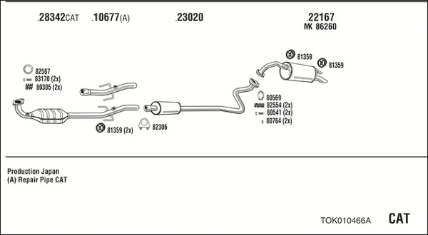 TOYOTA YARIS (_P1_) 1.0 (SCP10_, SCP10R) - Výfukový systém - kompletní od 4/1999 do 9/2005, 998 ccm, 50 kW, 68 hp, 1SZ-FE, Šikmá zadní část