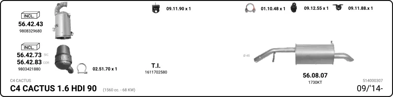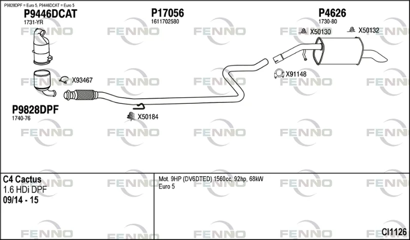 CITROËN C4 CACTUS 1.6 HDi 90 - Výfukový systém - kompletní od 9/2014, 1560 ccm, 68 kW, 92 hp, 9HJ (DV6DTEDM), 9HP (DV6D), 9HP (DV6DTED), Šikmá zadní část