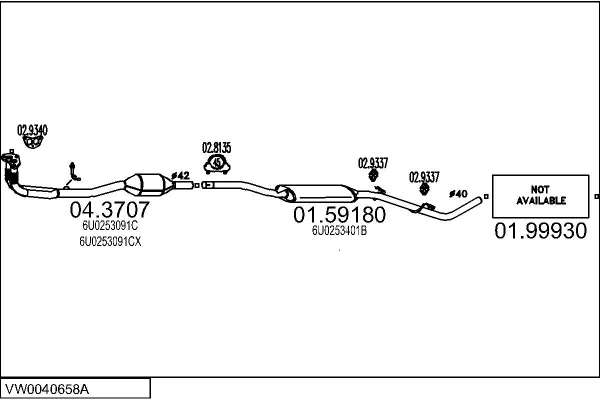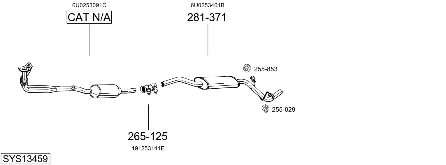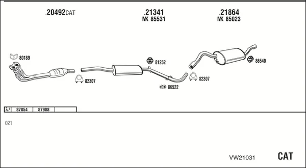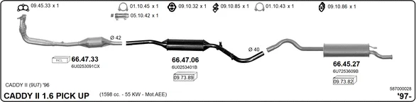 VW CADDY II pick-up (9U7) 1.6 - Výfukový systém - kompletní od 6/1996 do 12/2000, 1598 ccm, 55 kW, 75 hp, AEE, pick-up