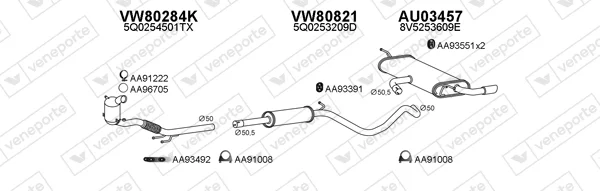 AUDI A3 Limousine (8VS, 8VM) 1.2 TFSI - Výfukový systém - kompletní od 5/2014 do 8/2016, 1197 ccm, 81 kW, 110 hp, CYVB, limuzína