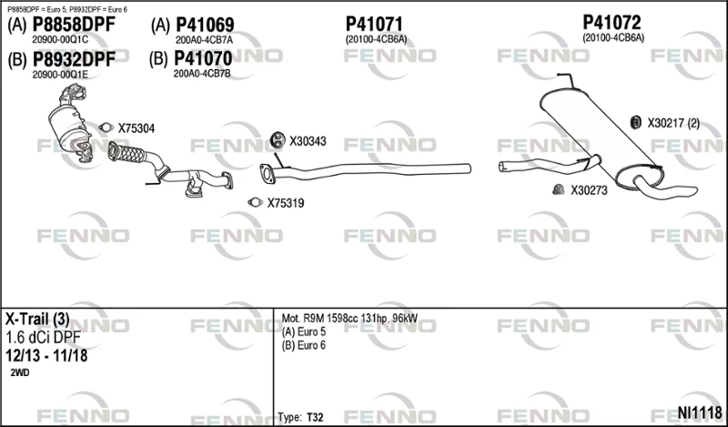 NISSAN X-TRAIL III (T32_, T32R, T32RR) 1.6 dCi (T32) - Výfukový systém - kompletní od 4/2014, 1598 ccm, 96 kW, 130 hp, R9M, SUV