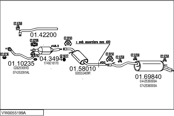 VW TRANSPORTER T4 Krabice (70A, 70H, 7DA, 7DH) 2.4 D - Výfukový systém - kompletní od 8/1997 do 4/2003, 2370 ccm, 55 kW, 75 hp, AJA, Krabice