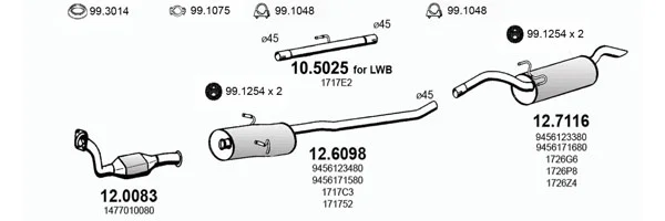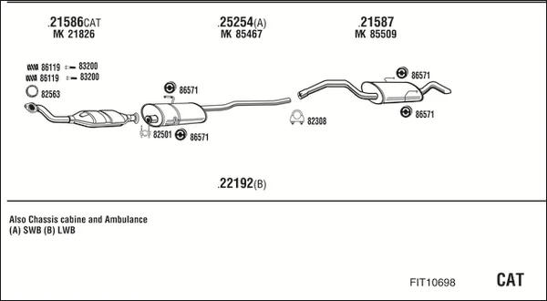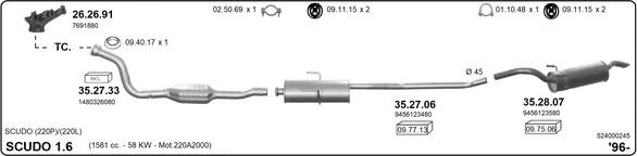 FIAT SCUDO Krabice (220_) 1.6 - Výfukový systém - kompletní od 2/1996 do 12/2006, 1581 ccm, 58 kW, 79 hp, 220 A 2.000, Krabice