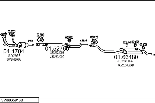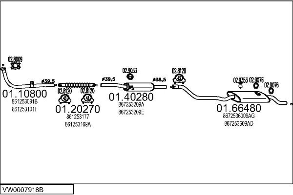 VW POLO Schránky/šikmá záď (86CF) 1.3 - Výfukový systém - kompletní od 8/1992 do 7/1994, 1272 ccm, 40 kW, 54 hp, AAV, Schránky/šikmá záď