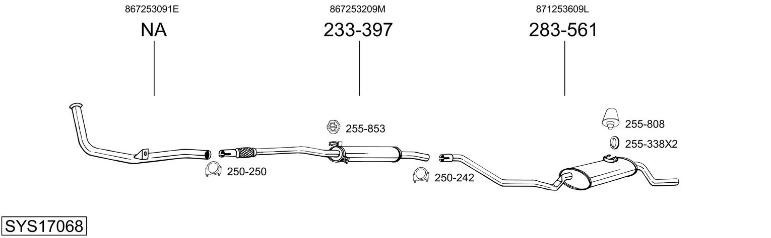 VW POLO Schránky/šikmá záď (86CF) 1.4 D - Výfukový systém - kompletní od 8/1992 do 7/1994, 1398 ccm, 35 kW, 48 hp, 1W, Schránky/šikmá záď