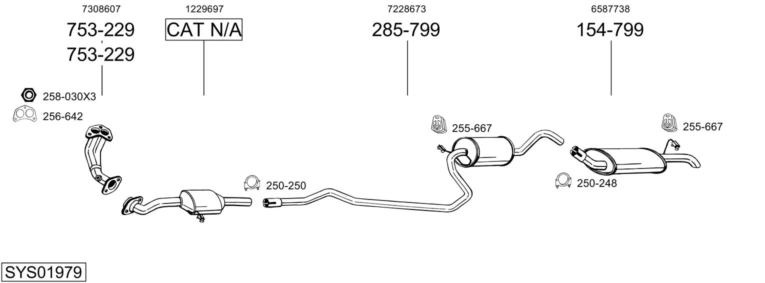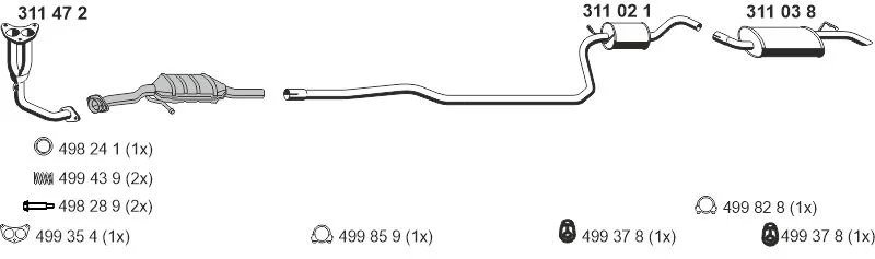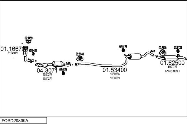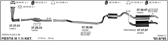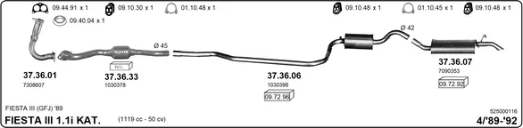 FORD FIESTA III (GFJ) 1.1 - Výfukový systém - kompletní od 3/1989 do 12/1995, 1119 ccm, 37 kW, 50 hp, G6A, Šikmá zadní část