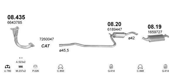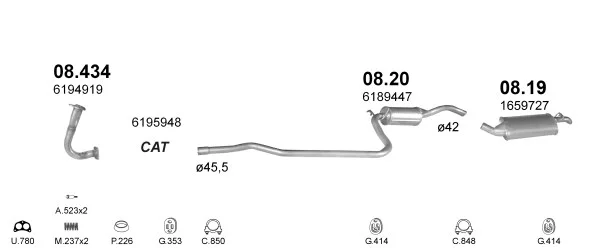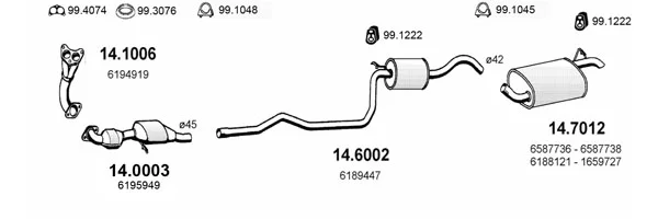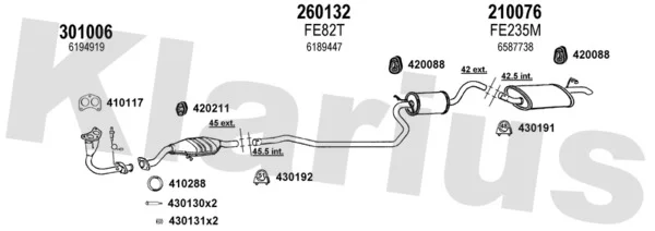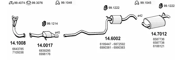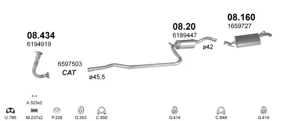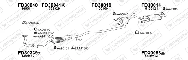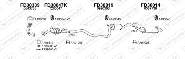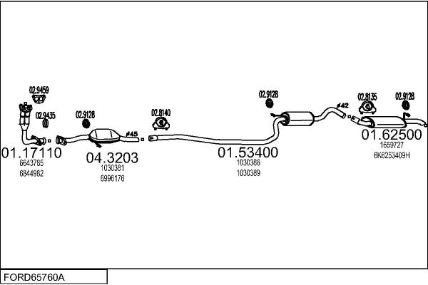 FORD FIESTA III (GFJ) 1.1 - Výfukový systém - kompletní od 3/1989 do 12/1995, 1119 ccm, 37 kW, 50 hp, G6A, Šikmá zadní část