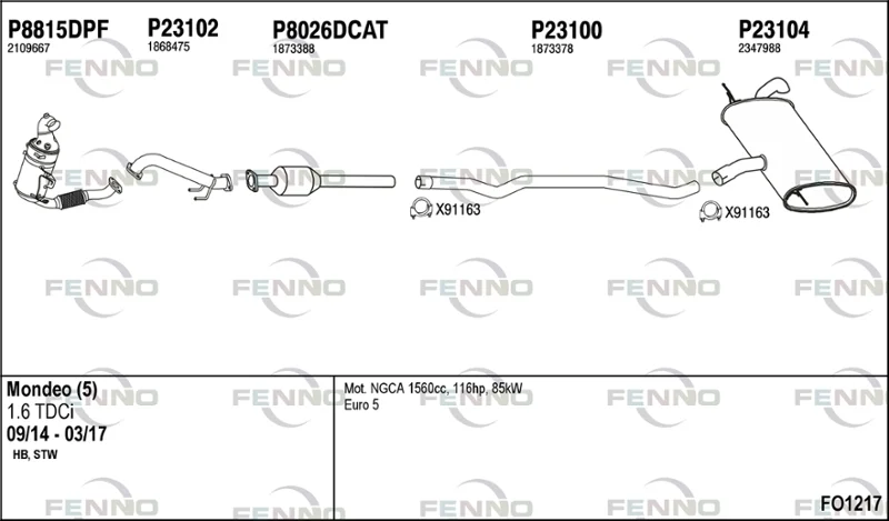 FORD MONDEO V Turnier (CF) 1.6 TDCi - Výfukový systém - kompletní od 9/2014, 1560 ccm, 85 kW, 115 hp, NGCA, U3CA, kombi