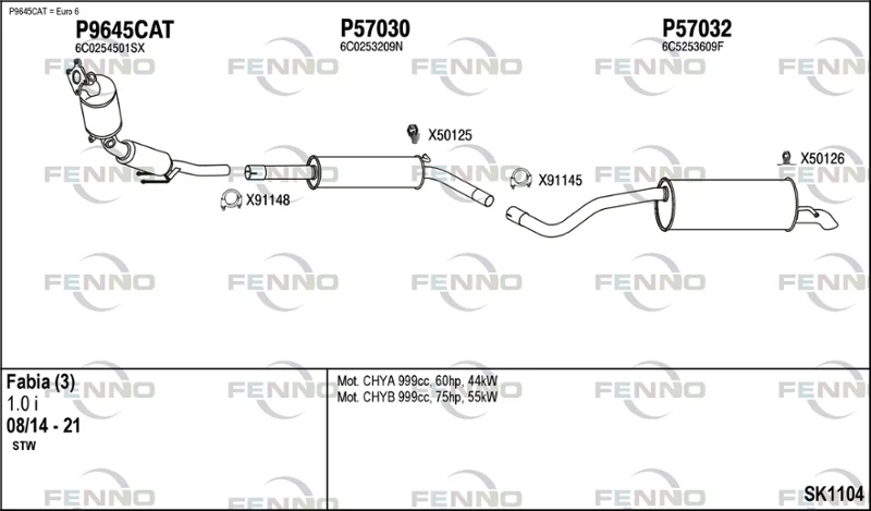 SKODA FABIA III kombi (NJ5) 1.0 - Výfukový systém - kompletní od 10/2014 do 12/2022, 999 ccm, 44 kW, 60 hp, CHYA, CHYE, kombi