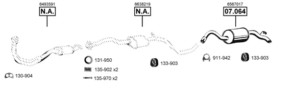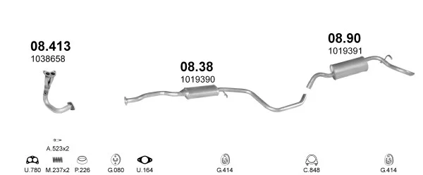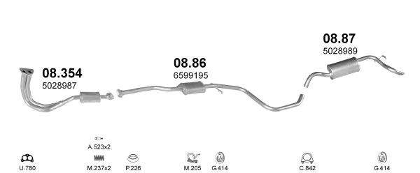 FORD ESCORT V (AAL, ABL) 1.3 - Výfukový systém - kompletní od 7/1990 do 1/1995, 1299 ccm, 44 kW, 60 hp, J4B, J6A, Šikmá zadní část