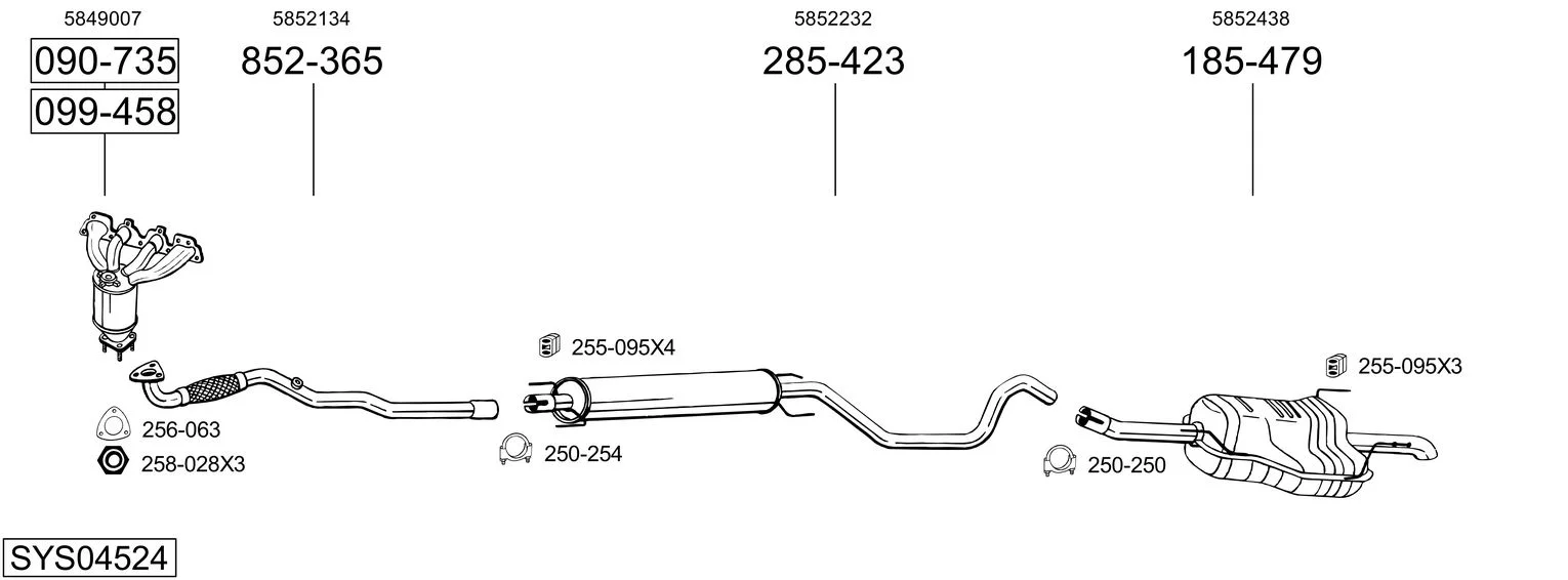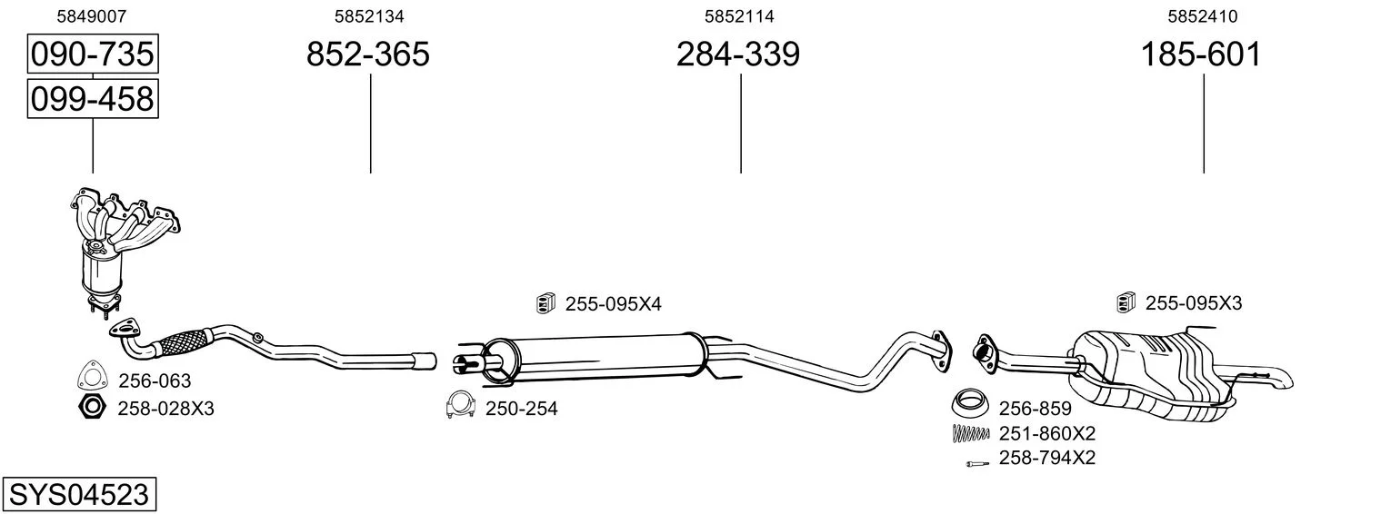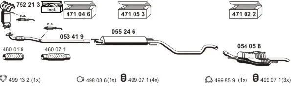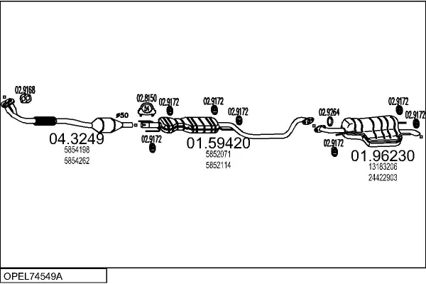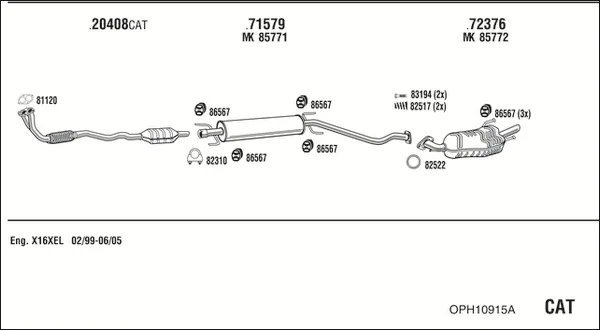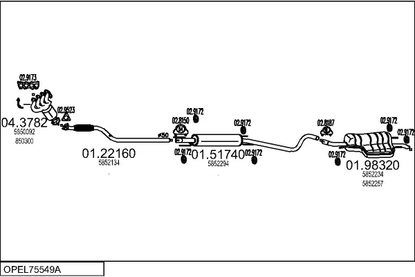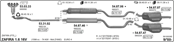 OPEL ZAFIRA A velkoprostorová limuzína (T98) 1.6 16V (F75) - Výfukový systém - kompletní od 4/1999 do 6/2005, 1598 ccm, 74 kW, 101 hp, X 16 XEL, Z 16 XE, velkoprostorová limuzína