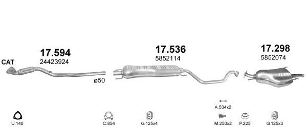OPEL ZAFIRA A velkoprostorová limuzína (T98) 1.6 16V (F75) - Výfukový systém - kompletní od 4/1999 do 6/2005, 1598 ccm, 74 kW, 101 hp, X 16 XEL, Z 16 XE, velkoprostorová limuzína