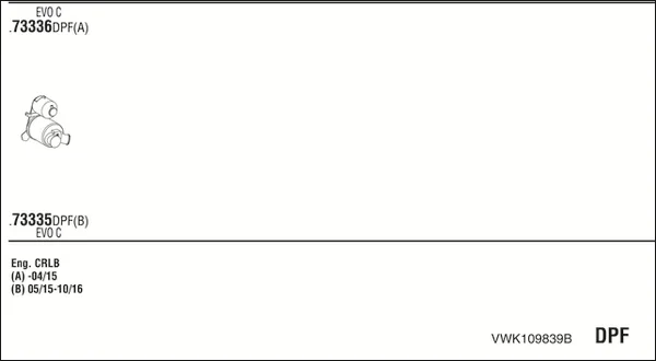 VW GOLF ALLTRACK VII Variant (BA5, BV5) 2.0 TDI 4motion - Výfukový systém - kompletní od 12/2014 do 8/2020, 1968 ccm, 110 kW, 150 hp, CRBC, CRLB, DCYA, DFGA, kombi