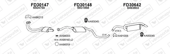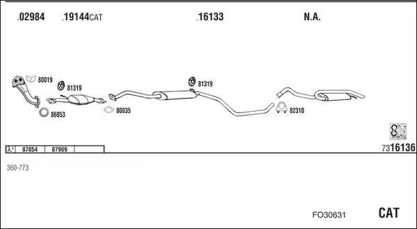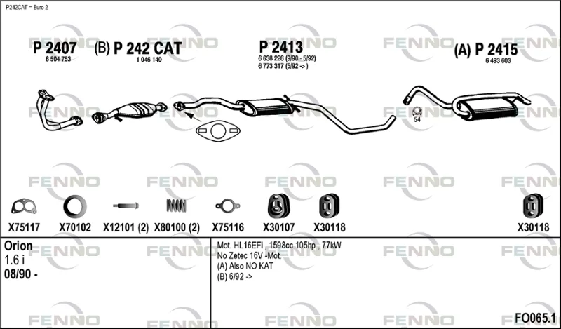 FORD ORION III (GAL) 1.6 i - Výfukový systém - kompletní od 7/1990 do 9/1992, 1598 ccm, 77 kW, 105 hp, LJF, limuzína