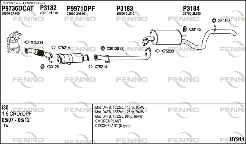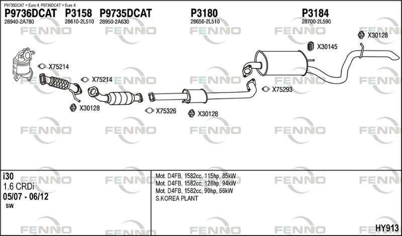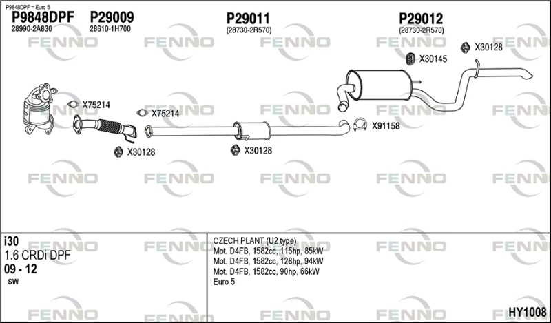 HYUNDAI i30 kombi (FD) 1.6 CRDi - Výfukový systém - kompletní od 1/2010 do 6/2012, 1582 ccm, 94 kW, 128 hp, D4FB, kombi