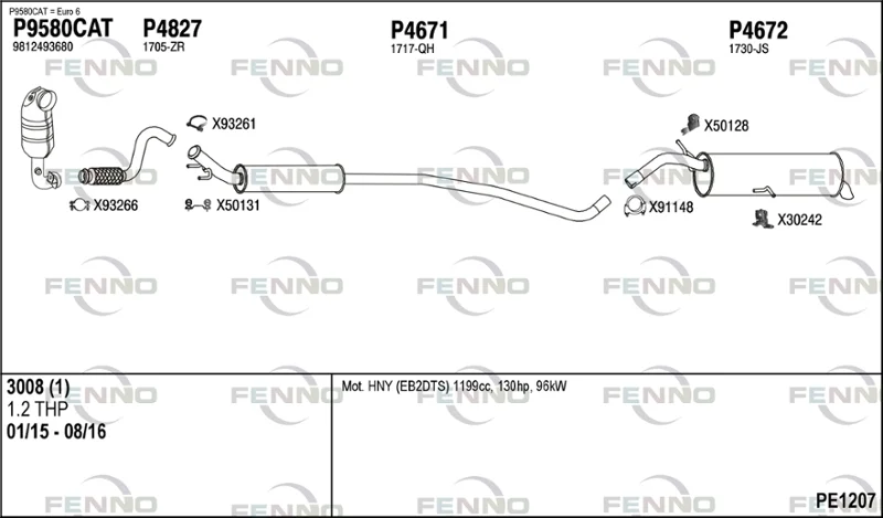PEUGEOT 3008 I velkoprostorová limuzína (0U_) 1.2 - Výfukový systém - kompletní od 1/2015 do 8/2016, 1199 ccm, 96 kW, 131 hp, HNY (EB2DTS), velkoprostorová limuzína