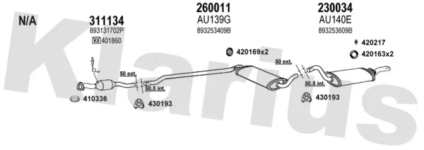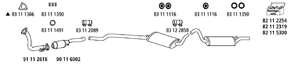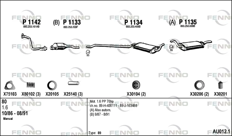 AUDI 80 B3 limuzína (893, 894, 8A2) 1.6 - Výfukový systém - kompletní od 8/1987 do 9/1991, 1595 ccm, 51 kW, 70 hp, PP, limuzína