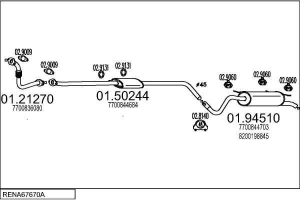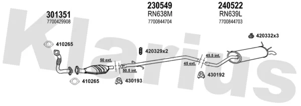 RENAULT MEGANE I Grandtour (KA0/1_) 1.9 D (KA0J, KA0R) - Výfukový systém - kompletní od 4/1999 do 8/2003, 1870 ccm, 47 kW, 64 hp, F8Q 622, F8Q 790, kombi